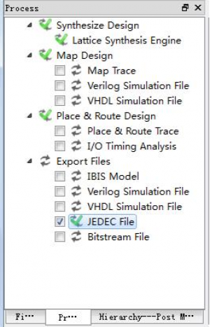 2.新建工程,输入设计文件,综合、布局布线并输出JED文件;